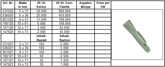 Universal / Verknotungsdübel ohne Bund